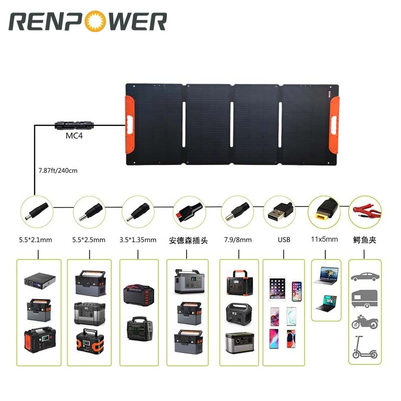 1.100W Portabel Lipat Selimut matahari terbuat dari monokristalin menghasilkan lebih banyak energi daripada panel surya yang terbuat dari elemen lain. Monokristalin membawa efisiensi konversi tinggi hingga 23%, dan output 160W dapat memenuhi sebagian besar kebutuhan pengisian luar ruangan.